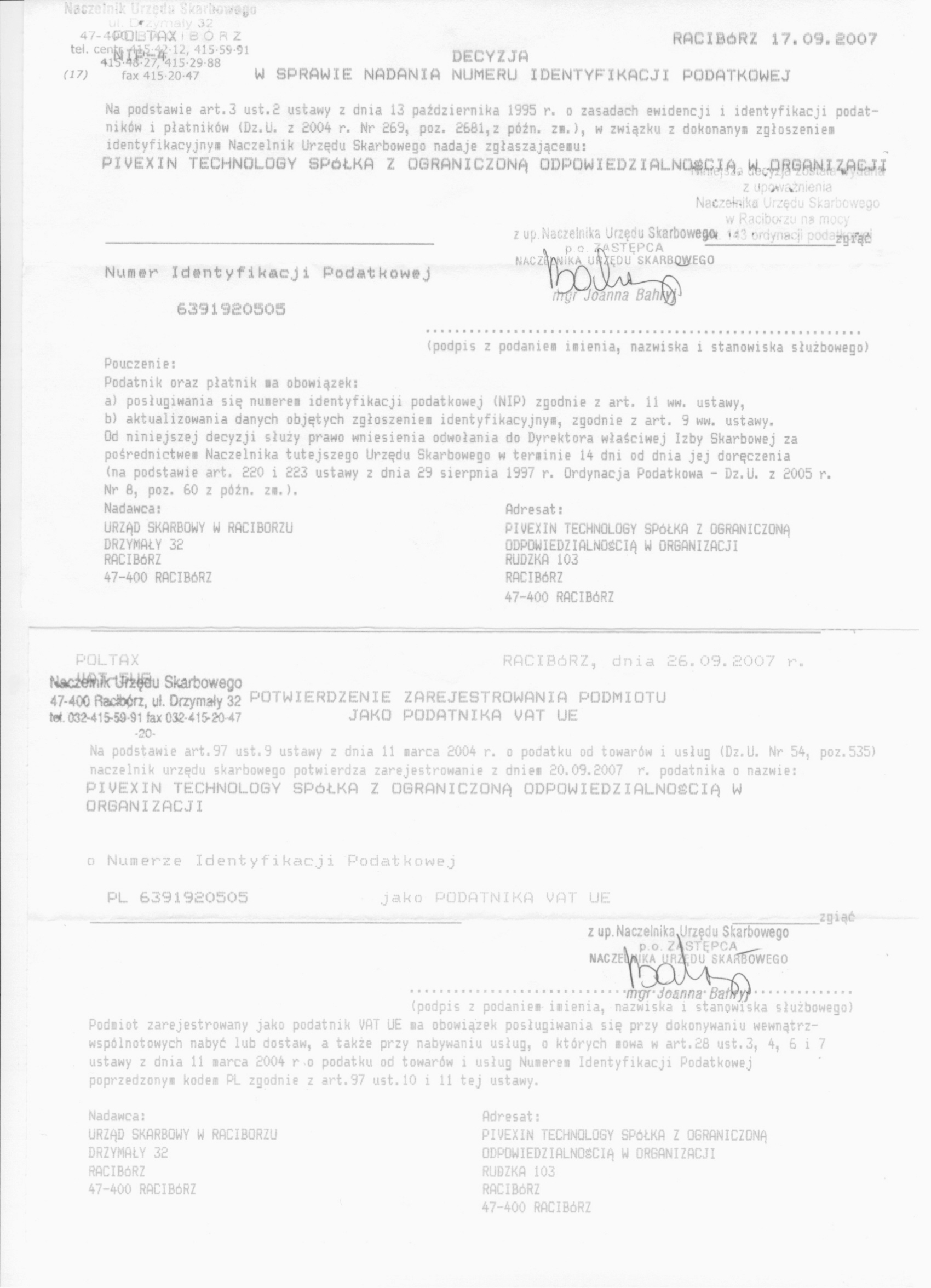 Kontaktieren Sie Pivexin Technology Sp. z o.o.