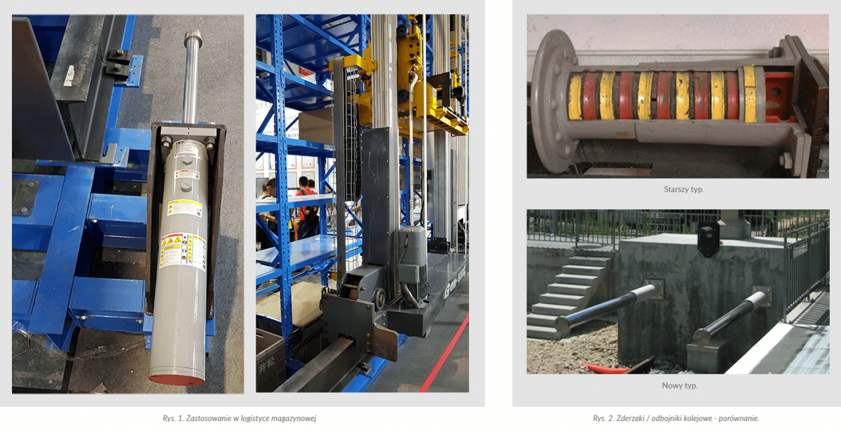 Ciężkie amortyzatory przemysłowe C-JAC Zastosowanie jako odbojniki, zderzaki np. w kolejnictwie.
