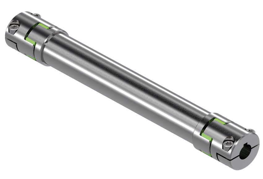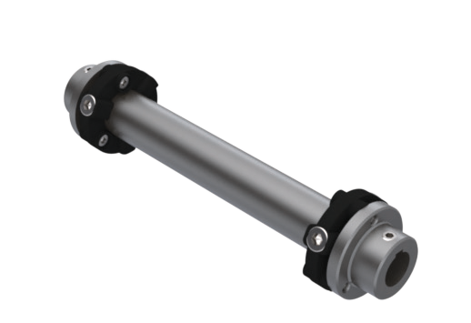 Wały napędowe DHE wyposażone są w elastyczne sprzęgła i służą do łączenia dużych odległości między osiami. Moment obrotowy jest przenoszony bezluzowo i tłumiony przez zintegrowane wkładki elastomerowe, które odpowiadają za właściwości sprzęgła oraz przenoszenie mocy.