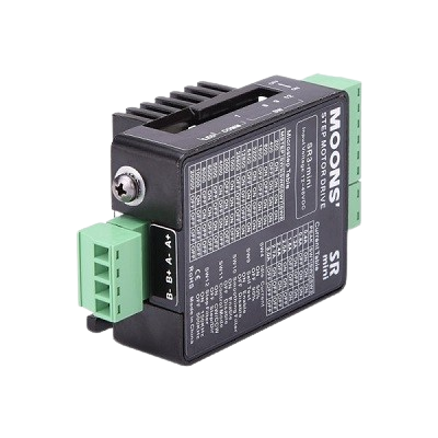 Sterowniki SR to proste, sterowane impulsowo sterowniki silników krokowych zasilane napięciem 24-75VDC. Prąd wyjściowy do 7,8A max. Konfiguracja sterownika przy użyciu dip switch’y i przełączników obrotowych. Możliwość obsługi silników 2-fazowych i 3-fazowych. Sterowniki serii SR cechują się kompaktowymi wymiarami. W szczególności SR3-mini którego wymiary to zaledwie 63x46x28mm. Sterowniki serii SR dostępne są w czterech wersjach prądowych SR3-mini do 3A, SR2/SR2 PLUS do 2,2A, SR4/SR4 Plus do 4,5A, oraz SR8/SR8 Plus do 7,8A.