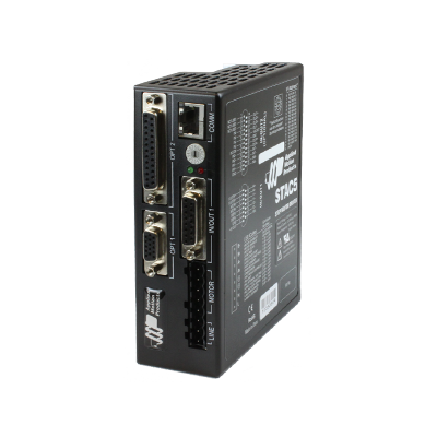 Sterowniki serii STAC to zaawansowane sterowniki silników krokowych, które w odróżnieniu od serii ST, zasilane są napięciem 120/230VAC. Posiadają zaawansowane funkcje sterowania prądem silnika, funkcje antyrezonansowe, funkcje prewencji i wykrycia utknięcia silnika, funkcję wygładzenia tętnień momentu i emulację pracy mikrokrokowej. Sterowniki serii STAC posiadają rozbudowane opcje sterowania: impulsowe (krok-kierunek), sygnał analogowy, wbudowany wewnętrzny sterownik ruchu Qprogrammer, komunikację sieciową: Modbus RTU, CANopen, Ethernet/IP, eSCL oraz dużą liczbę wejść/wyjść. Opcjonalnie sterowniki ST mogą być przystosowane do obsługi enkodera inkrementalnego.