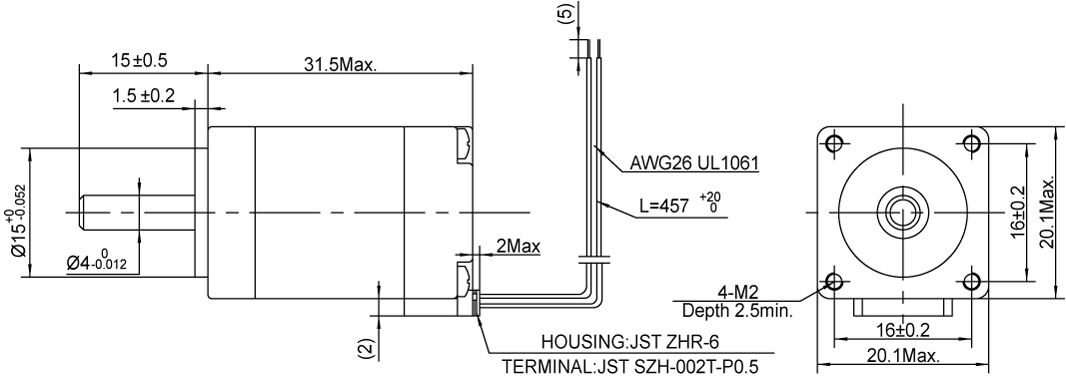 Silnik krokowy MOONS’ AM8HY2050-01N 0,02Nm, 0,35A, 1.8deg Pojedynczy walek