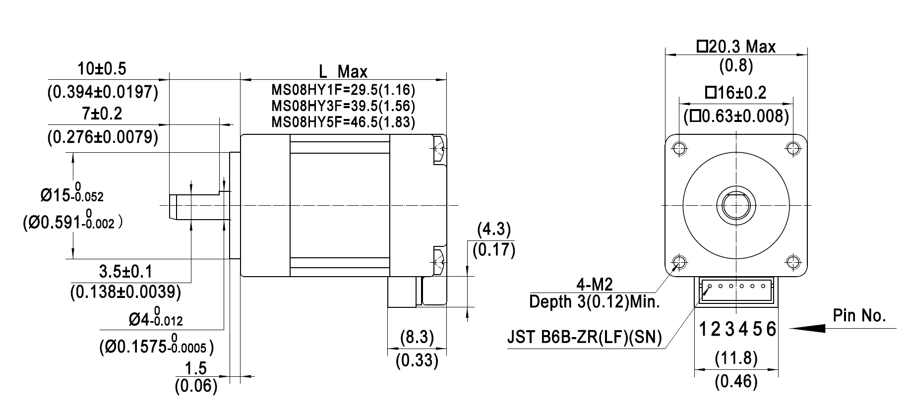 Silnik krokowy MOONS’ MS08HY3R4065 0,050Nm 0,65A 1.8deg