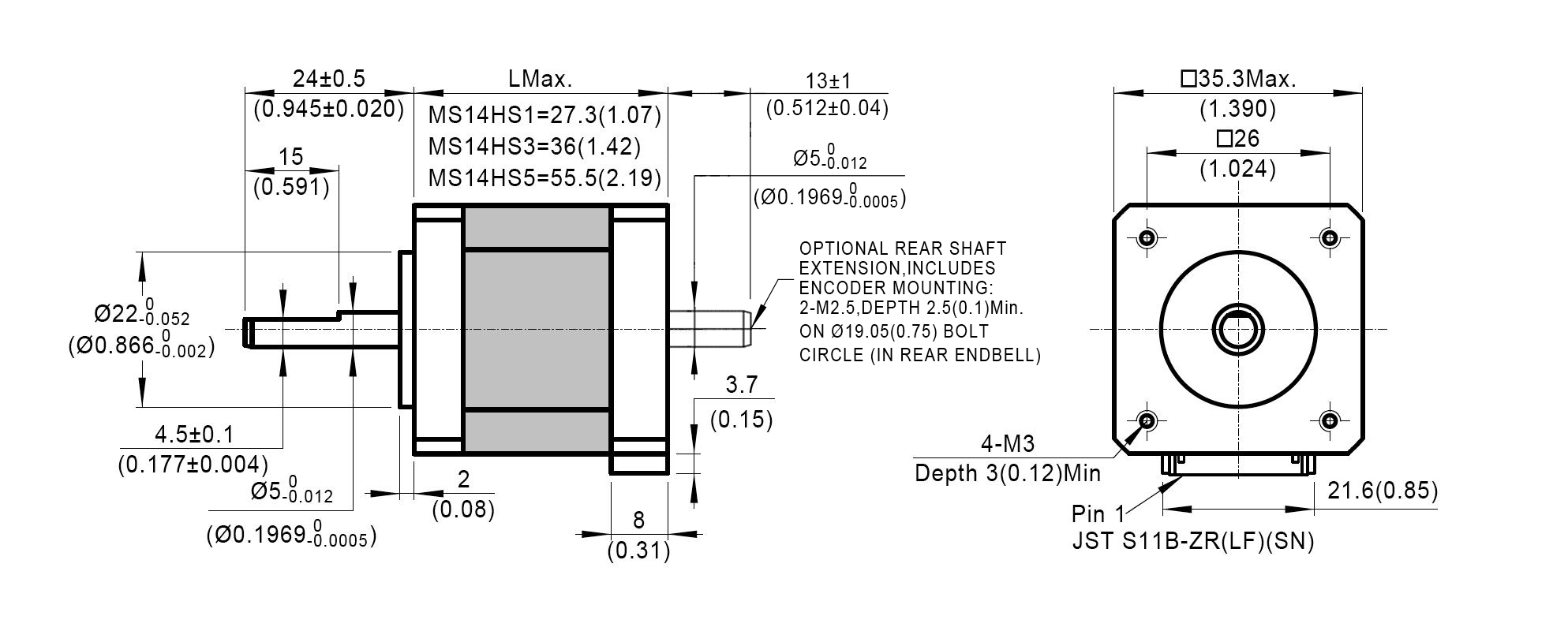 Silnik krokowy MOONS’ MS14HS3P4150-M 0,23Nm 1,5A 1.8deg