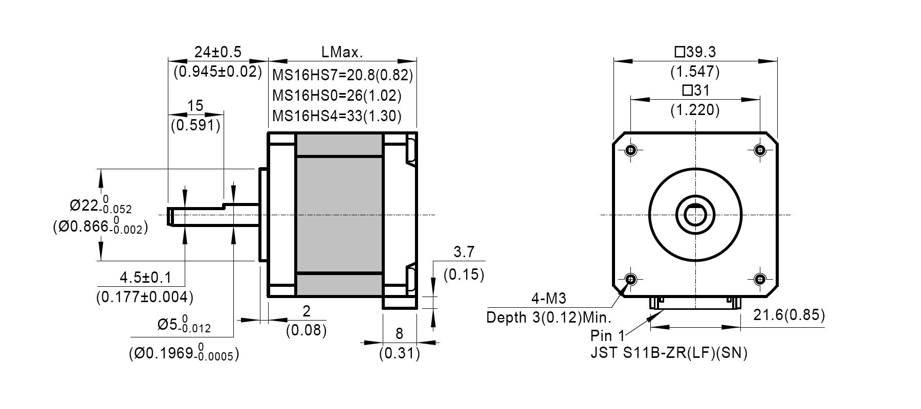 Silnik krokowy MOONS’ MS16HS7P4150 0,10Nm 1,5A 1.8deg