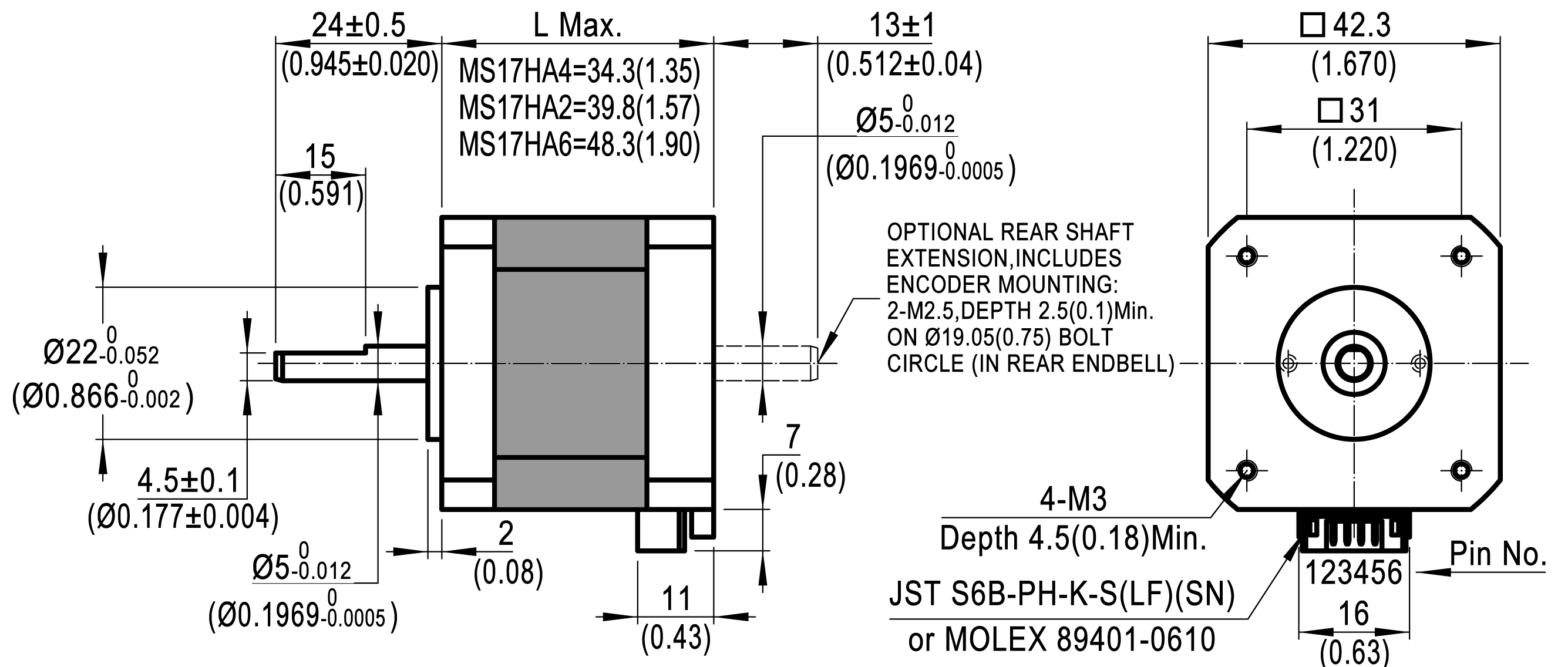 Silnik krokowy MOONS’ MS17HA4P4100 0,30Nm 1A 0,9deg