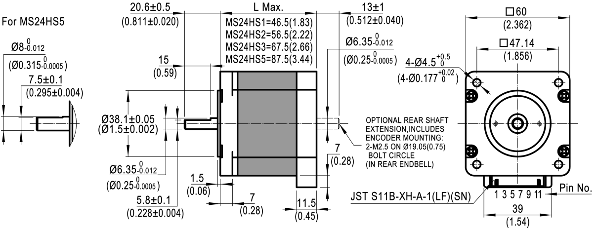 Silnik krokowy MOONS` MS24HS5L440A-01 3,2Nm 4A 1.8deg, pojedynczy wałek d=8mm