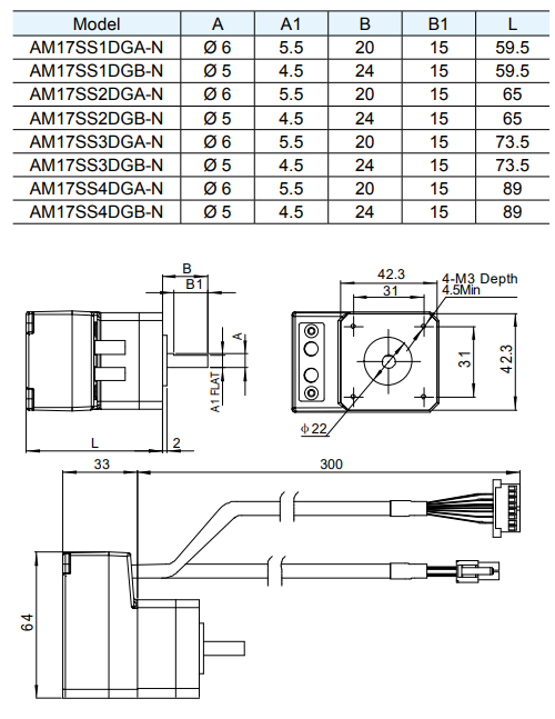 Silnik serwokrokowy MOONS’ AM17SS1DGB-N 0.26Nm enkoder 20000 imp./obr.; bez hamulca; d=5mm
