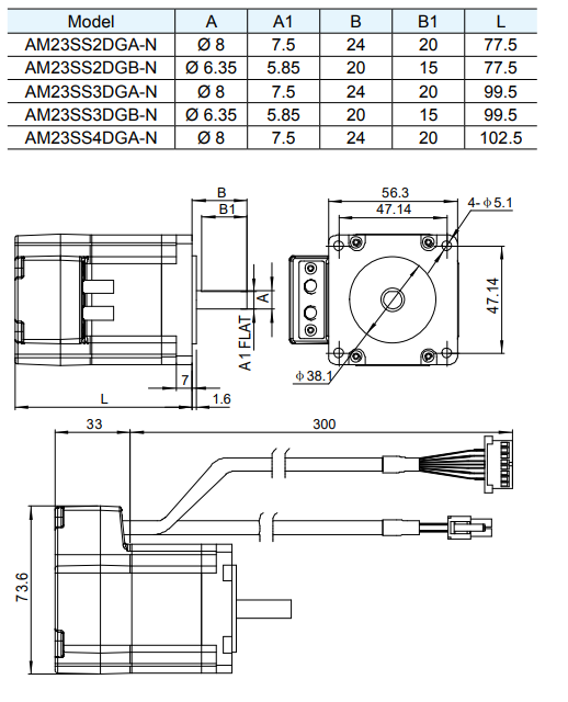Silnik serwokrokowy MOONS’ AM23SS4DGA-N 2.4Nm enkoder 20000 imp./obr.; bez hamulca; d=8mm