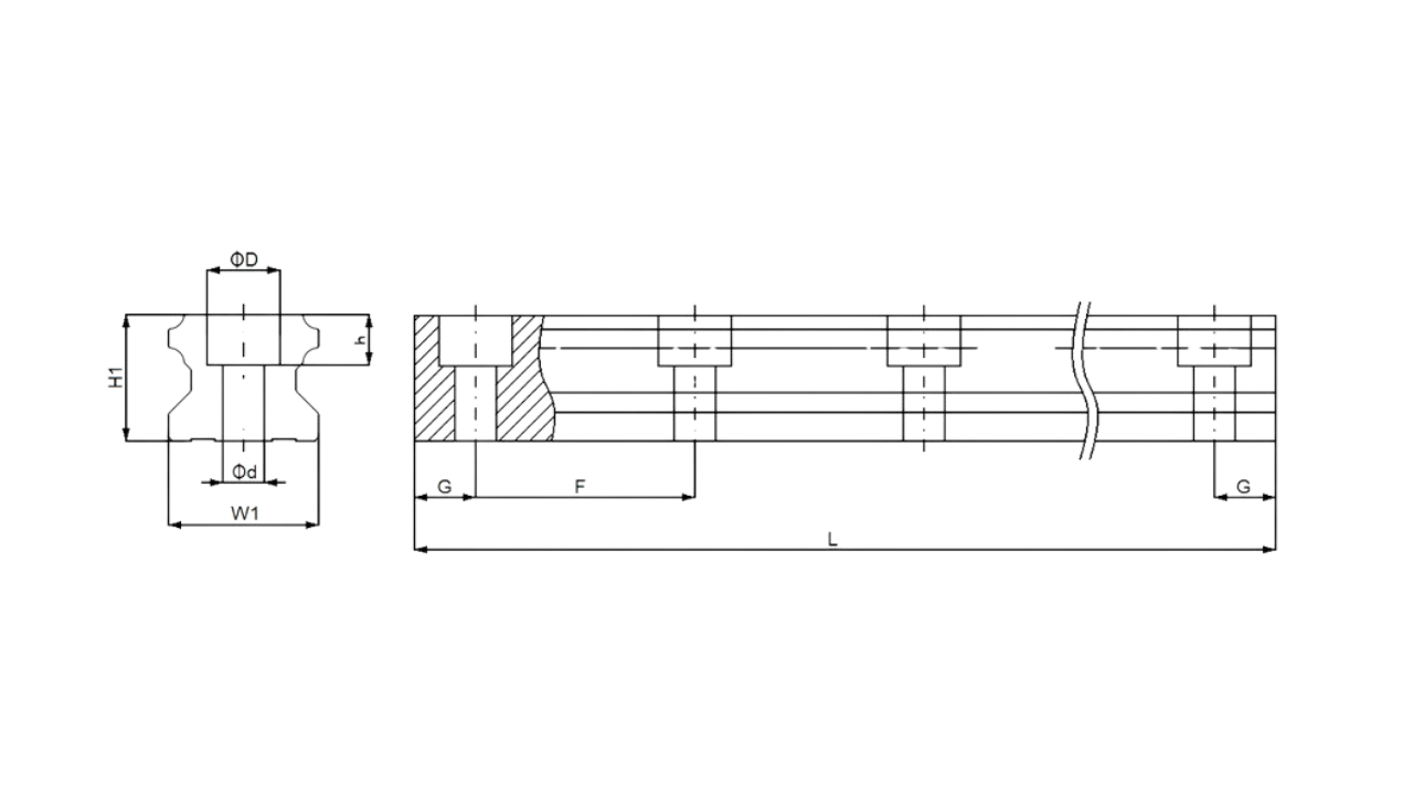 Szyna liniowa TR25-H; otwory przelotowe; klasa H