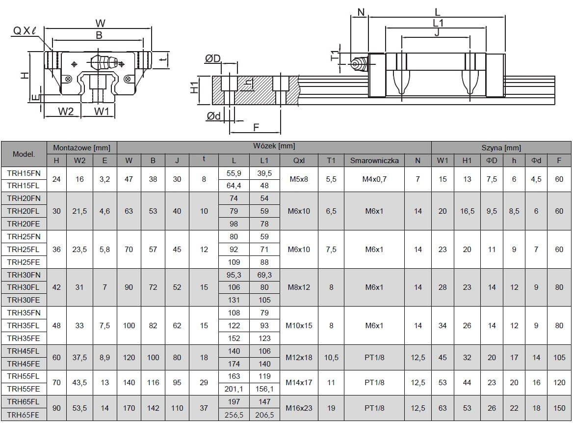 Wózki marki TBI MOTION serii TRH oraz TRS dopasowane są do szyn TR.